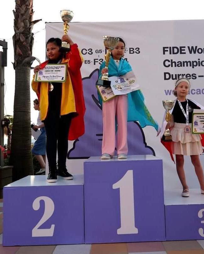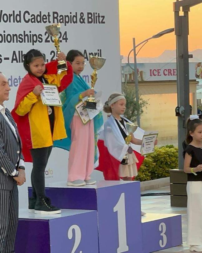 Z wielką dumą informujemy, że nasza uczennica, Nina Bos, zdobyła brązowy medal Mistrzostw Świata w szachach szybkich! Zawody zostały rozegrane w Albanii, w dniach 25-28.04.2024. Dziewczynki rozegrały turniej szachów szybkich, a następnie błyskawicznych. Nina w ostatniej rundzie walczyła o zostanie wicemistrzynią Świata, jednak jej przeciwniczka skutecznie wybroniła się i w partii zapadł remis, który dawał Ninie brązowy medal.